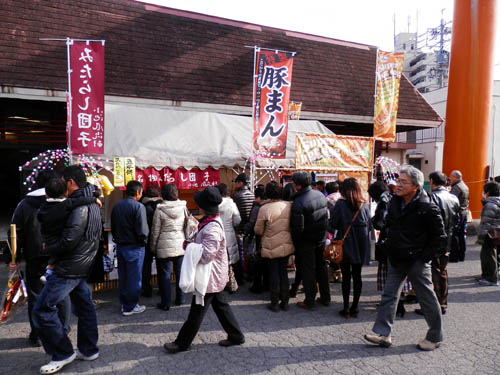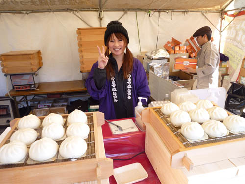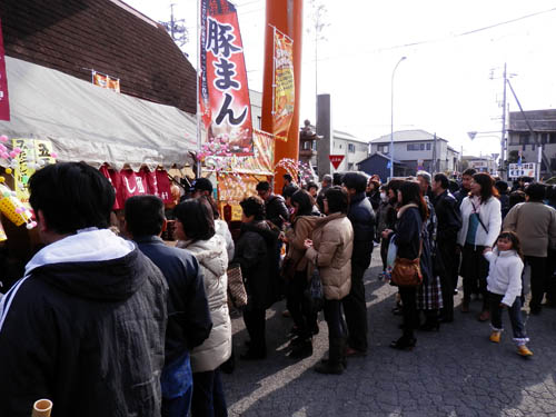 今年はみたらし団子・五平餅に続き、豚まんを販売しました。天気は良かったですが、寒かったので豚まんの売れ行きが好調でした。当社は津島市観光協会の会員としてお手伝いしております。